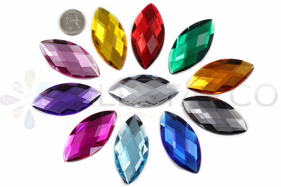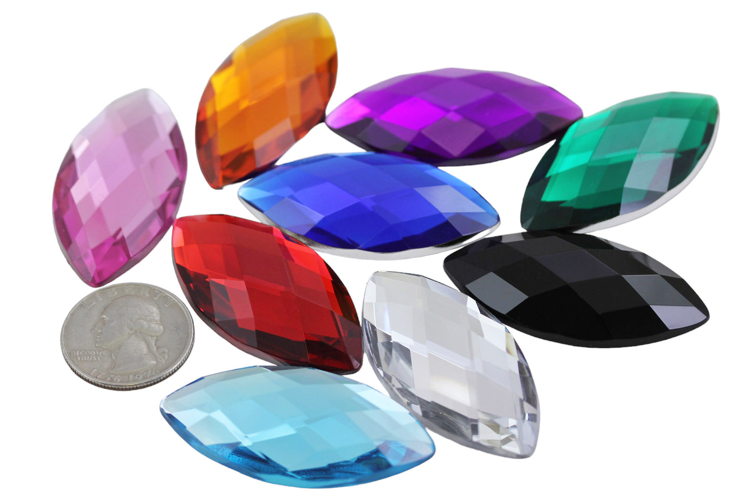 Veredeln Sie Ihre Bastelprojekte mit diesen atemberaubenden extragroßen Navette-Acryl-Edelsteinen. Mit ihrem schlanken, länglich-ovalen Design und facettierten Schliffen strahlen diese Edelsteine Brillanz und Raffinesse aus. Die flache Rückseite ermöglicht eine einfache Anwendung und eignet sich perfekt zum Aufkleben auf verschiedene Oberflächen.