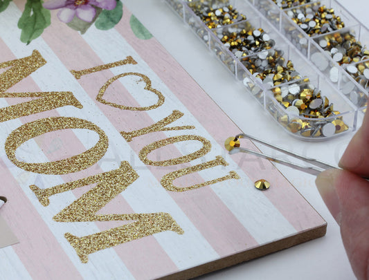 Vergoldetes Glas mit flacher Rückseite Strasssteine Kristalle für Nailart Kit 6 Größen (1,4 mm - 4,8 mm) - Über 2100 Stück