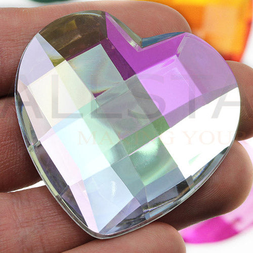 Crystal AB Extra große flache Rückseite Herz Edelsteine - 50mm - 2 Stück