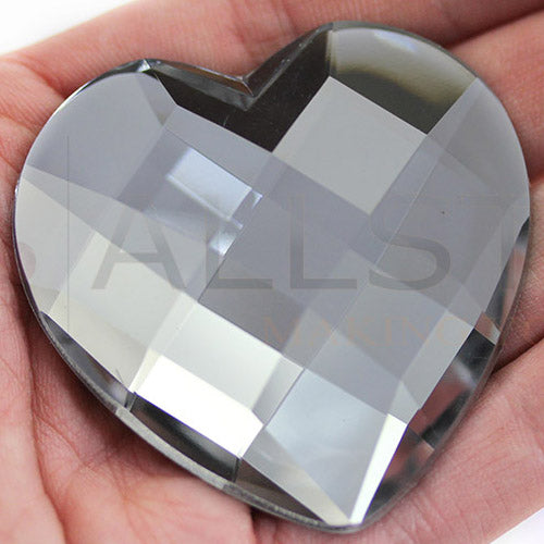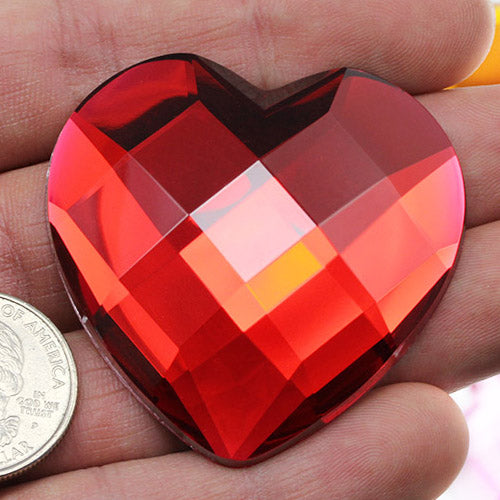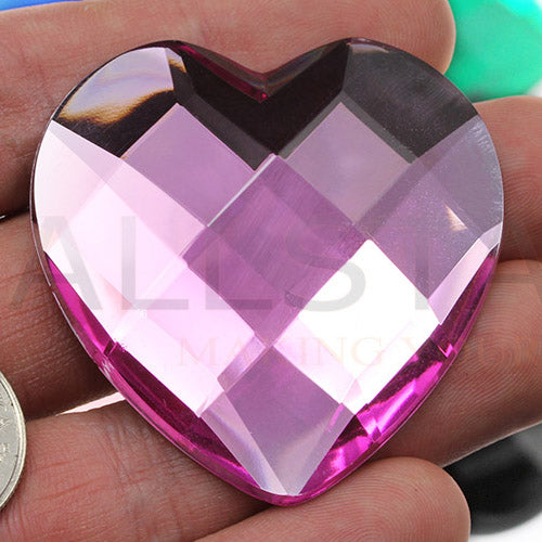 Kristallklare extra große flache Rückseite Herz Edelsteine - 60mm - 2 Stück