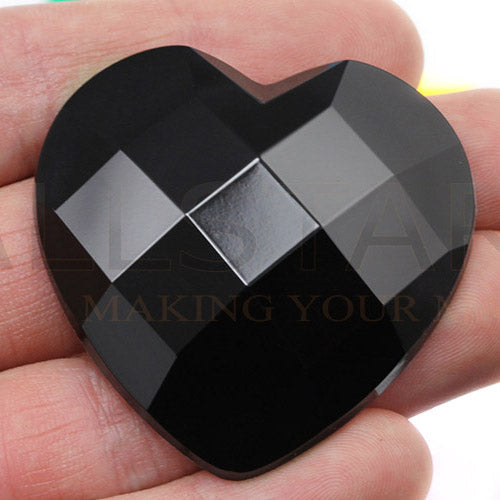 Schwarze extra große flache Rückseite Herz Edelsteine - 50mm - 2 Stück
