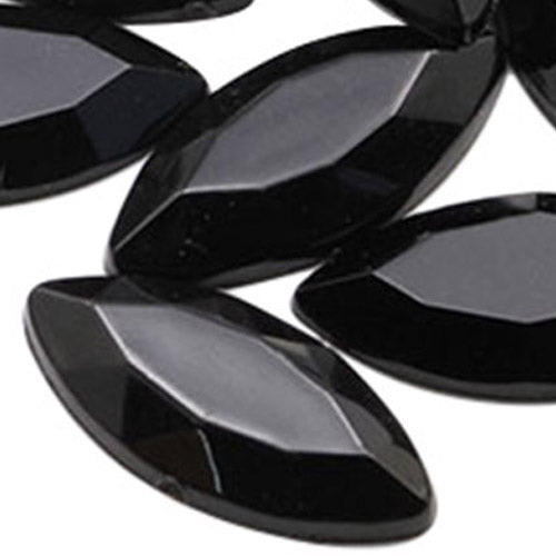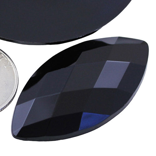 Tiefschwarze extra große Navette Edelsteine mit flachem Rücken - 50x25mm - 2 Stück