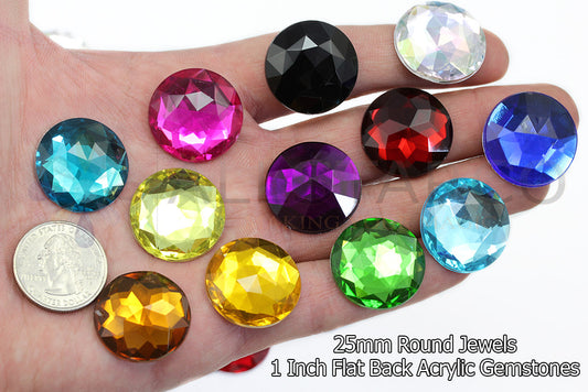 Midnight Jet Black AB Flat Back Round Gems - 25mm - 20 Pieces