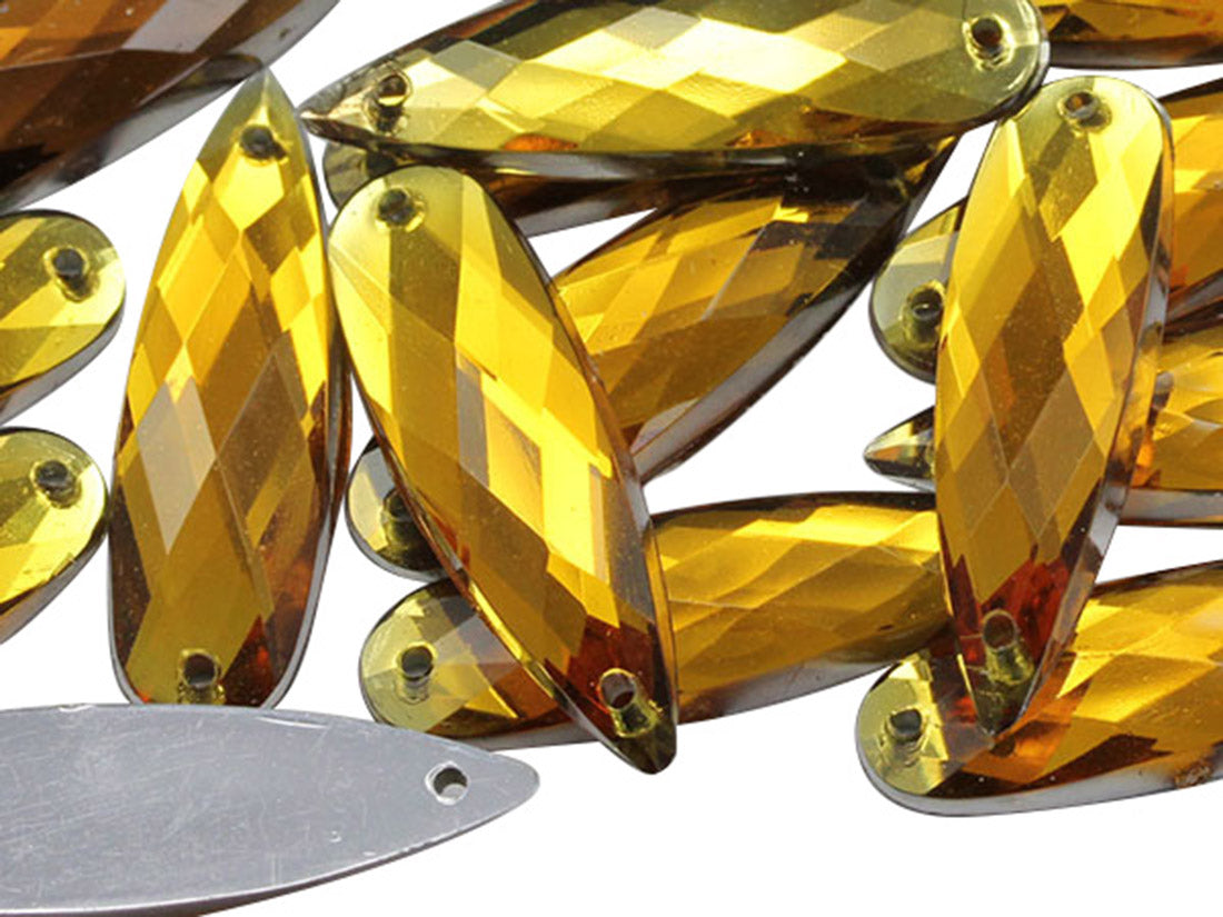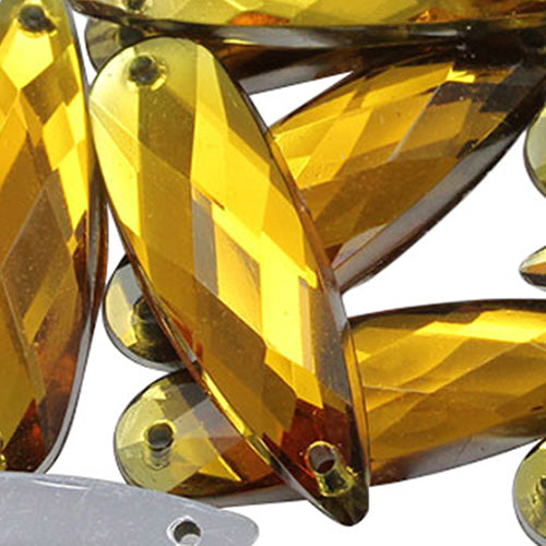 Goldtopas Längliche Tropfenstickerei zum Aufnähen - 28x8mm - 30 Stück