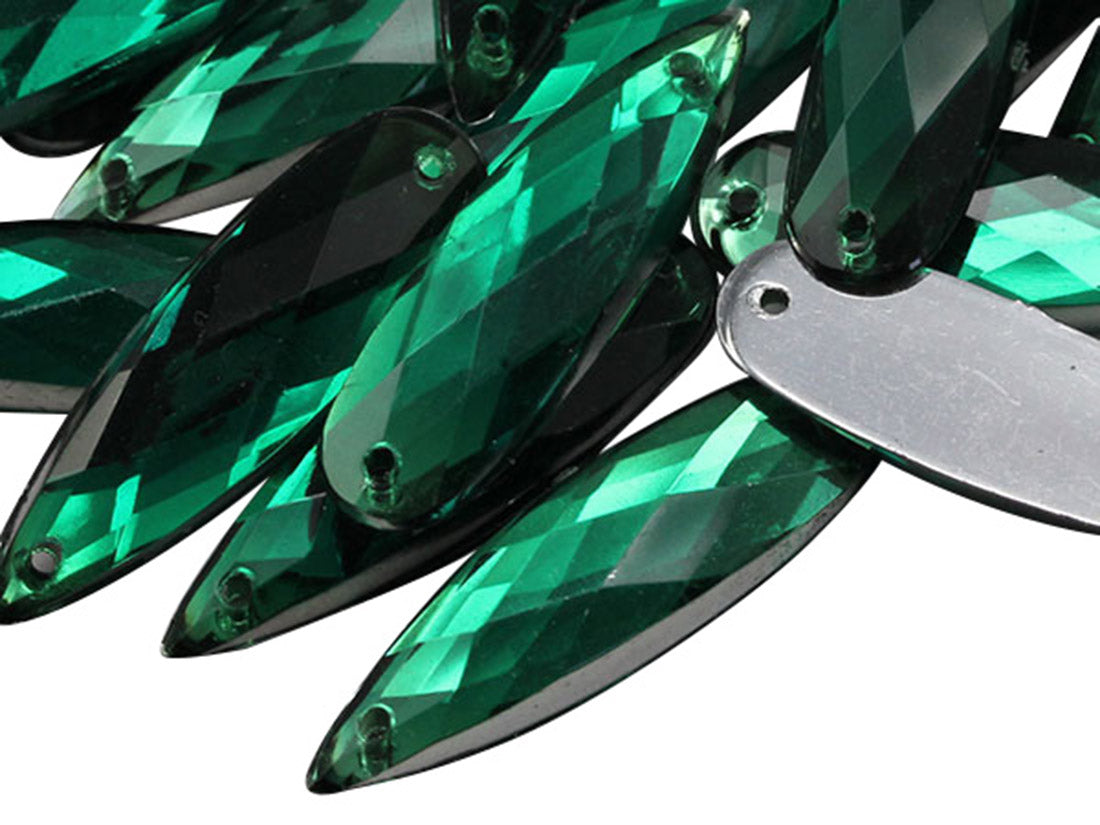 Green Emerald Elongated Teardrop Sew On Gems - 28x8mm - 30 Pieces