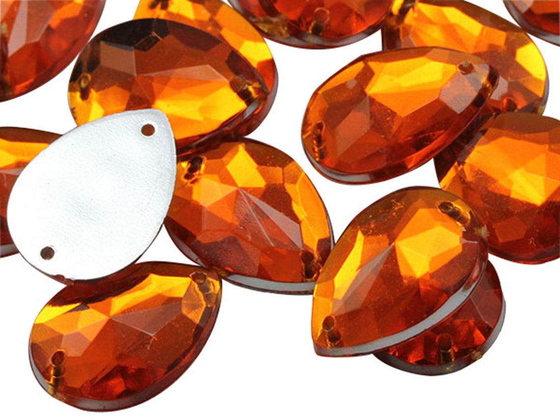 Orange Hyazinthe Tränenform Aufnähen Edelsteine - 18x13mm - 50 Stück