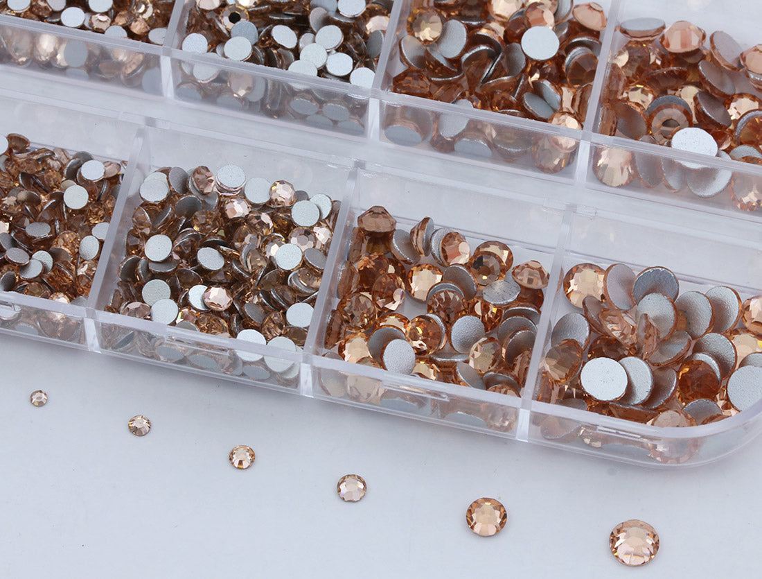 Pfirsich Champagner Glas mit flacher Rückseite Strasssteine Kristalle für Nailart Kit 6 Größen (1,4 mm - 4,8 mm) - Über 2100 Stück
