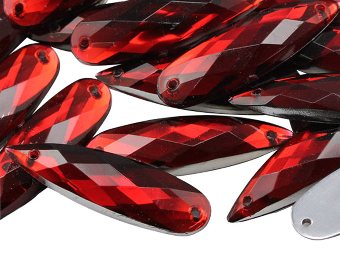 Roter Rubin Längliche Träne zum Aufnähen von Edelsteinen - 28x8mm - 30 Stück