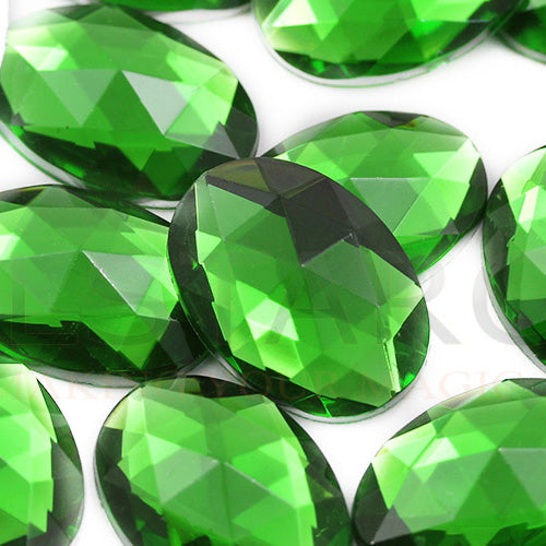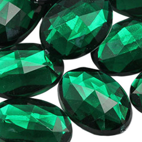 Gemmes ovales à dos plat émeraude verte - 40x30mm - 4 mcx
