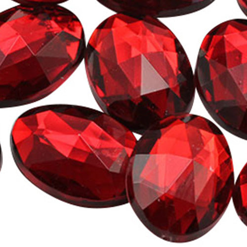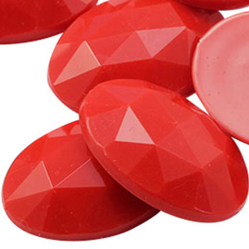 Gemmes ovales à dos plat opaques rouges - 25x18mm - 20 mcx