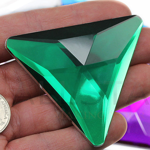 Gemmes triangulaires extra larges à dos plat émeraude verte - 68 mm - 2 mcx