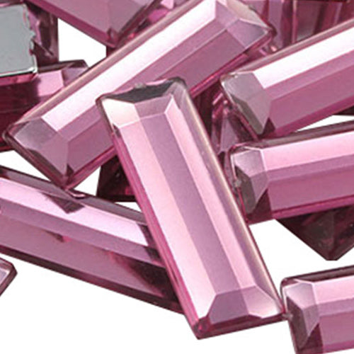 Gemmes à dos plat baguette rose - 22 x 7 mm - 40 mcx